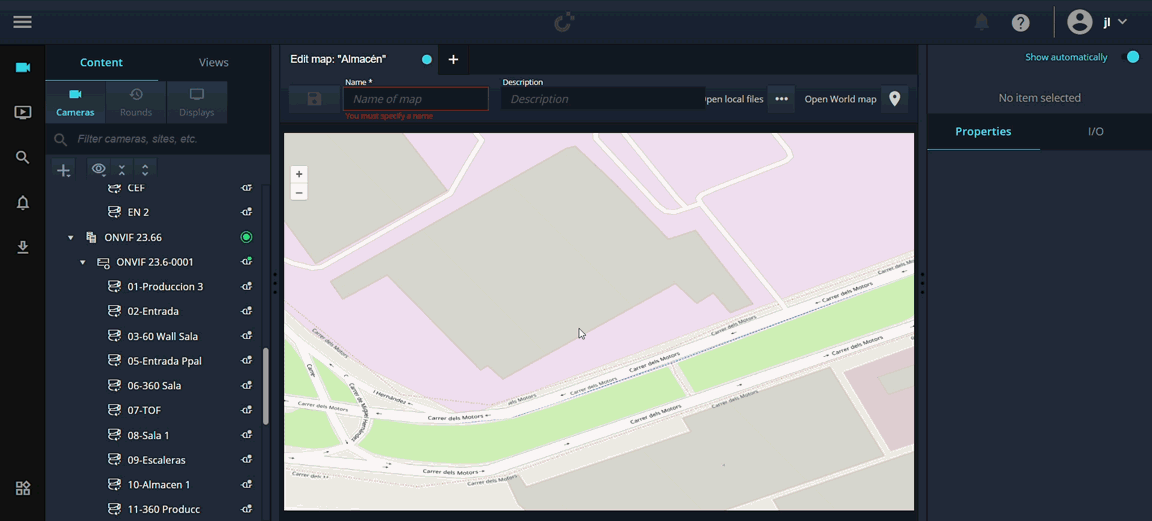 Voici quelques-uns des éléments qu’il est possible d’intégrer à une carte 2D : des cartes imbriquées, des caméras, des hubs (regroupements logiques de plusieurs dispositifs), des entrées (capteurs physiques ou virtuels) et des sorties (dispositifs physiques ou virtuels avec lesquels les systèmes interagissent).